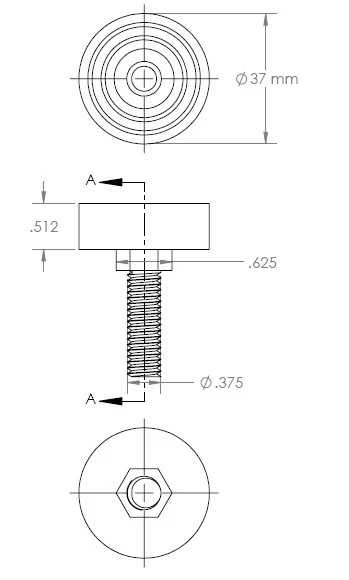 Adjustable Leveler With Nut – 3/8”- 16 x 37mm (Rubber Dia.) x 30mm (L)