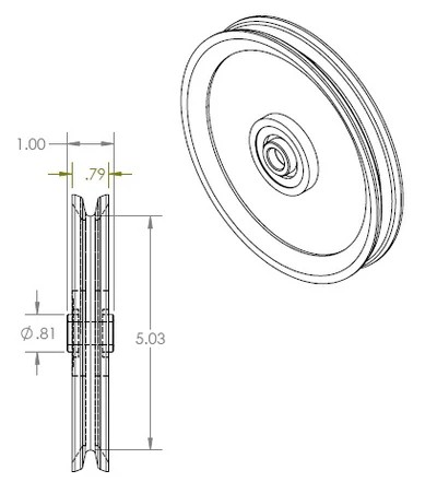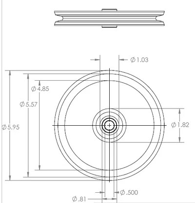 O.D: 6” Height: 1” Hub x 3/8” Steel Bore. Made in China. Heavy Duty
